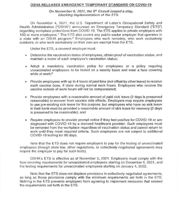 OSHA Releases Emergency Temporary Standard on Covid-19